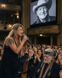 Last night, Willie Nelson didn’t sit like an icon with a lifetime of outlaw anthems behind him. At 92, he sat quietly. Like a father. When his daughter, Paula Nelson, walked onto the stage and chose one of his songs, the room shifted. No reinvention. No spotlight tricks. Just a familiar melody — carried by a voice that grew up hearing it through thin walls and long highway nights. As the first verse settled, Willie tipped his head down. Not to hide anything. Just to listen. For a moment, there was no history. No Hall of Fame. No legends in the air. Only a man hearing his life echoed back… by the person who lived closest to it. Someone in the crowd wrote later: “That wasn’t a cover. That was a daughter returning a lifetime of songs.”