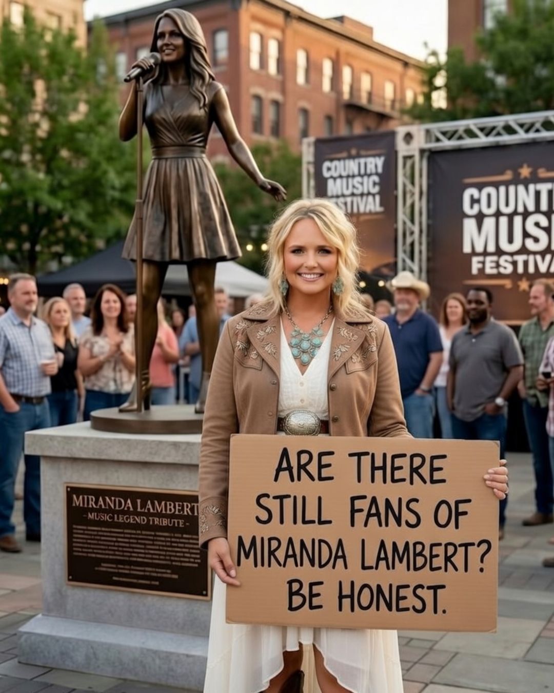 In the end, “A DAUGHTER RETURNS HOME FOREVER” — THE DAY A HOMETOWN TURNED MIRANDA LAMBERT INTO MEMORY CAST IN BRONZE is powerful because it speaks to more than admiration. It speaks to permanence. It suggests that Miranda Lambert no longer belongs only to records, stages, or headlines. She belongs to the place that shaped her, and to the people who see in her story a reflection of their own pride. Bronze may be silent, but in moments like this, silence says enough. It tells the world that some artists are not merely remembered. They are kept.